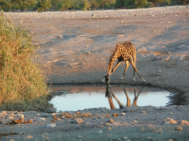 Etosha National Park – Giraffe beim Trinken
